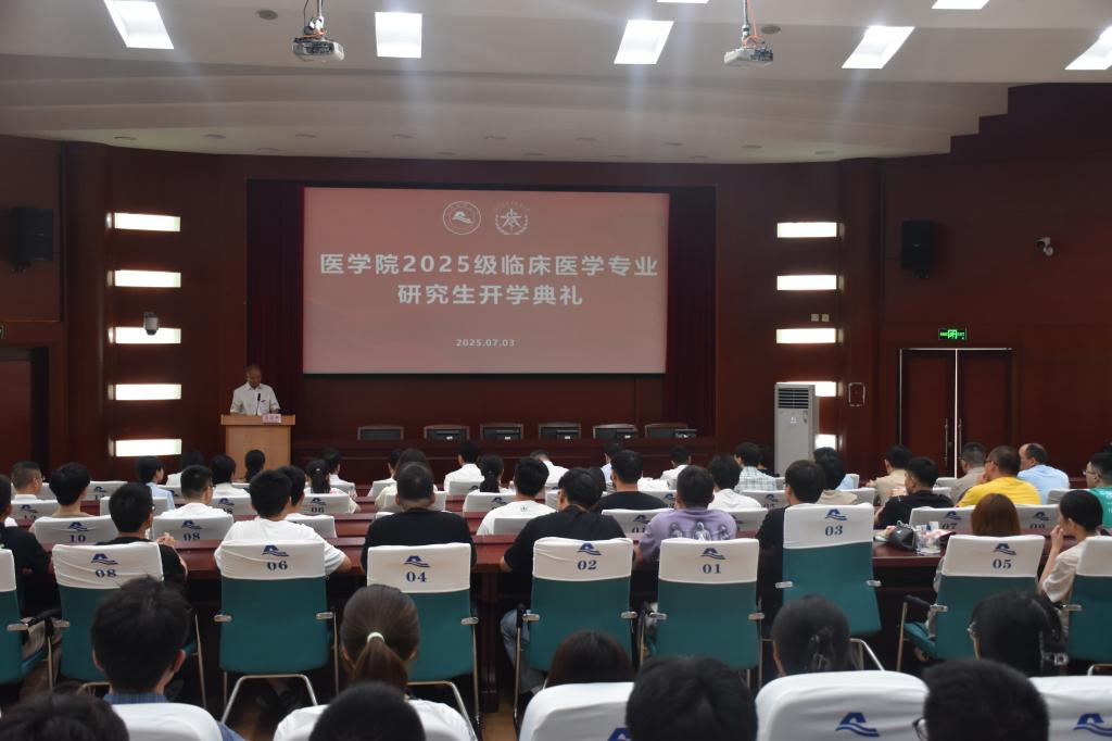 7月3日,学院2025级临床医学专业研究生开学典礼在南山校区7号楼报告厅举行。学校副校长柳国庆、校附属妇幼保健院党委书记赵振华、校附属第一医院副院长鲁葆春、校研究生院常务副院长梁奇锋,学院党政领导班子成员、研究生联合培养基地和导师代表,开云最新官方各系部、科室、中心负责人,全体辅导员、新生班班主任等参加典礼。典礼由学院党委书记吴剑平主持。