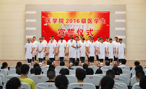 “健康所系,性命相托……”9月10日上午,简单而隆重的2016级医学生宣誓仪式在铁城科教馆举行,我院395名新生在此刻庄严宣誓,许下一名医学生的郑重承诺,开启了人生的崭新篇章。