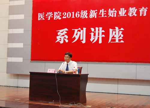 9月10日上午,我院新生始业教育之“院长、书记系列讲座”第一讲在河西校区铁城科教馆举行,我院副院长张剑教授为2016级医学新生作题为《医学生如何更好地度过大学生活》的主题报告。
