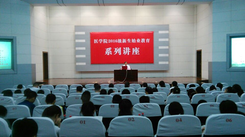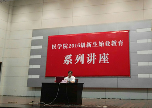 9月10日下午,我院新生始业教育之“院长、书记系列讲座”第二讲在河西校区铁城科教馆举行,院党委副书记袁油迪为2016级医学新生作题为《格局决定人生的高度》的主题报告。