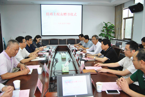 9月14日下午,任培土校友赠书仪式在我院行政楼219会议室举行。校友总会会长宋培基,校党委委员、院党委书记柳国庆,校附属医院院长胡学建,