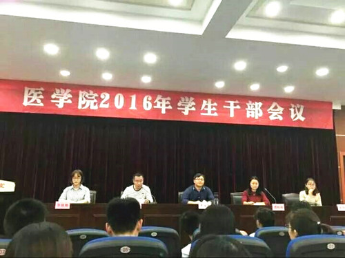 10月19日晚,我院在财贞楼二楼报告厅召开2016年学生干部会议。院党委副书记袁油迪,院团委负责人、辅导员老师、全体团委学生会干部、在校生班长、团支书参加会议。