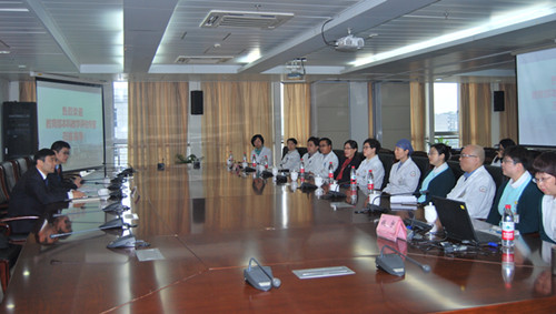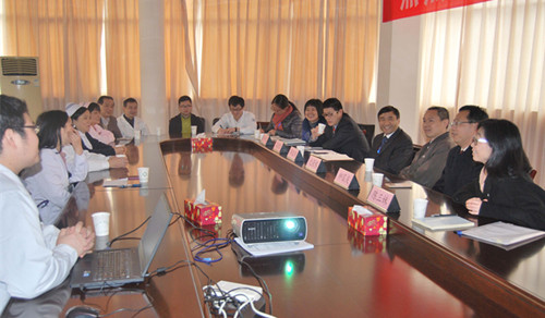 8:10,李俊伟教授在附属第一医院会议室与医院领导班子成员座谈,听取教学工作汇报。绍兴市卫计委副主任王宏达,附属第一医院领导郭航远、寿清和、屠春雨、陶哲军、钱宇、阎晓勤、冯钢、车焕永等出席座谈会。