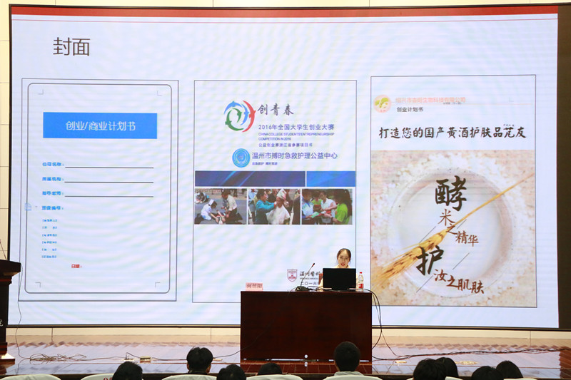 陈佳祎结合她的创业比赛实践,着重就选题和计划书进行了说明,选题需根据市场需求和相应技术,计划书的书写则是比赛的重要部分。“可以不成功,不能不成长”,她希望同学们能够不断锻炼自己的心智和能力,收获成长。