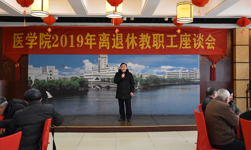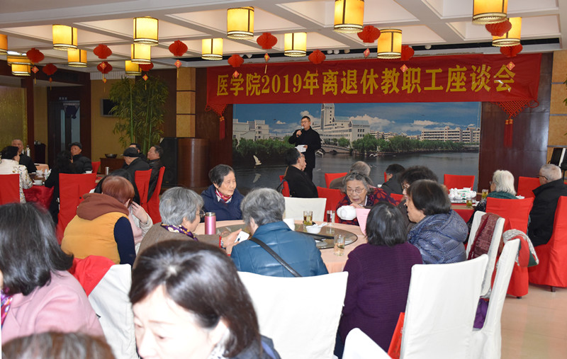 1月13日,腊八节当天,学院在河西校区对竹楼举行2019年离退休教职工座谈会。校党委委员、副校长柳国庆,院党委副书记袁油迪,副院长陈三妹及50余名离退休老同志参加会议。会议由袁油迪主持。