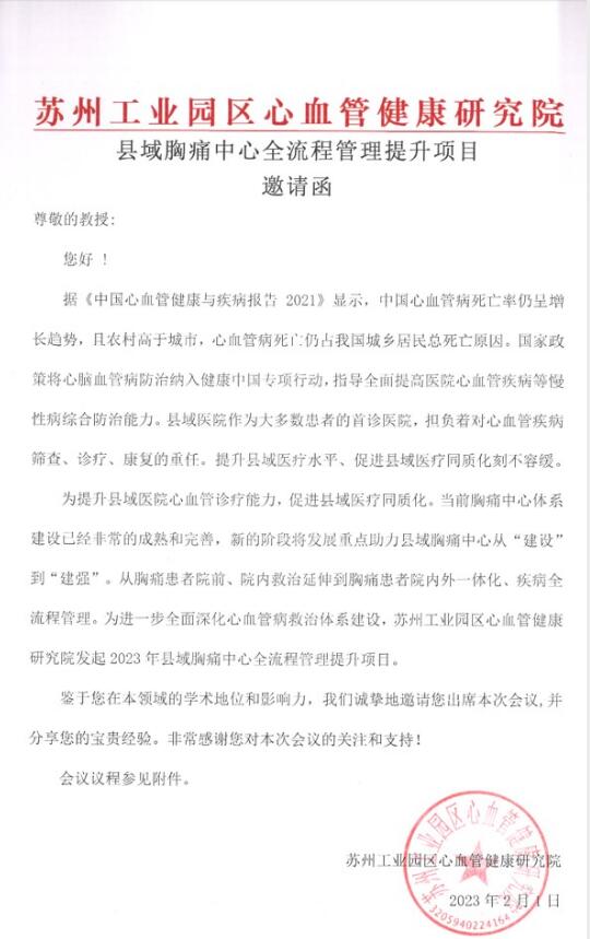 县域胸痛中心全流程管理提升项目邀请函