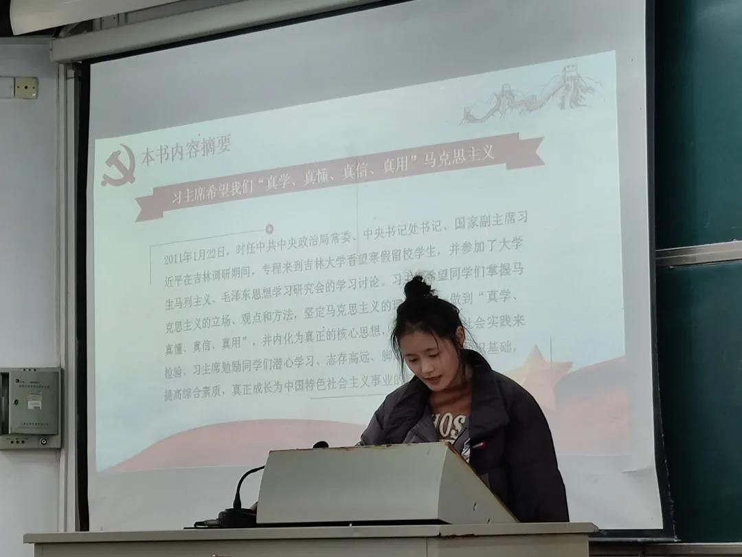 首先,蒋芝怡同学带领大家了解《习近平与大学生朋友们》全书的内容及总书记的重要讲话精神,全面呈现了习近平同志在不同时期对青年大学生一以贯之的关心关怀,系统展现了习近平总书记关于青年工作的重要思想的发展脉络积极关注国家大事、社会发展,将自身的成长与祖国的命运相联系,争做德智体美劳全面发展的社会主义合格建设者和可靠接班人。