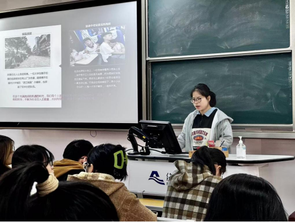 会议伊始,孙一雯同学先从一段视频引入以“大学生的人生就要充满Passion”的主题,进行了对近期大学生温暖事迹的展示与讨论,激励我们应继续在校园和社会中传播正能量。接着她从网络中爆火的“活人微死”现象进行剖析,讨论了如何通过教育和自我提升来恢复和保持激情。与此同时,她以大学生夜骑开封的案例为切入点,声情并茂的讲述了“激情”并不等同于“冲动”,夜骑开封的背后是社会秩序的混乱,孙一雯同学呼吁我们应思考如何在追求个人兴趣的同时,考虑到对社会秩序的影响。