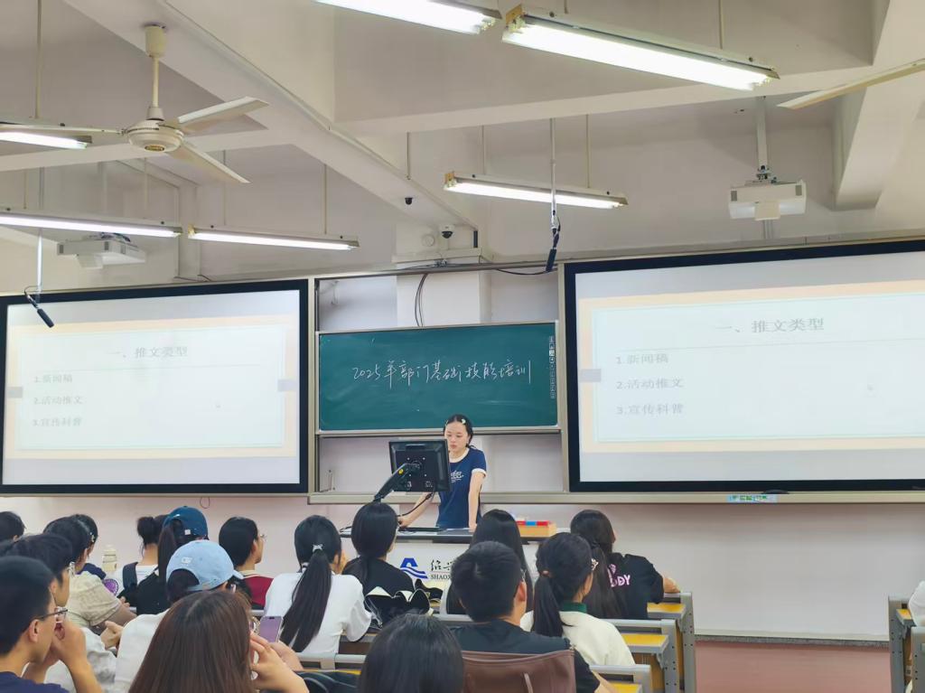为助力开云最新官方团委学生会成员掌握文案撰写、照片拍摄等核心能力,促进团学工作更加高效、更加顺利地开展。9月19日中午12点30分,我院于财贞楼217教室开展技能培训会议,由团委新媒体中心面向团委学生会全体成员展开培训。