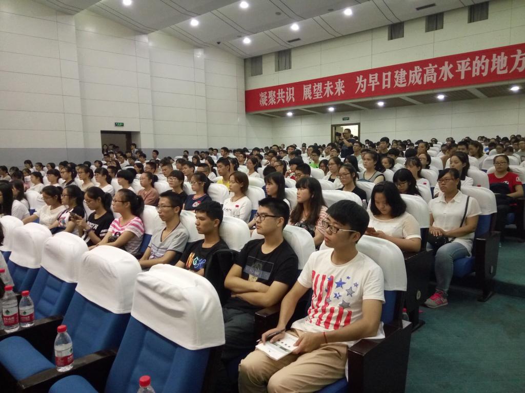 图中台下的同学正津津有味地听着讲座,聆听教授的经验之谈。