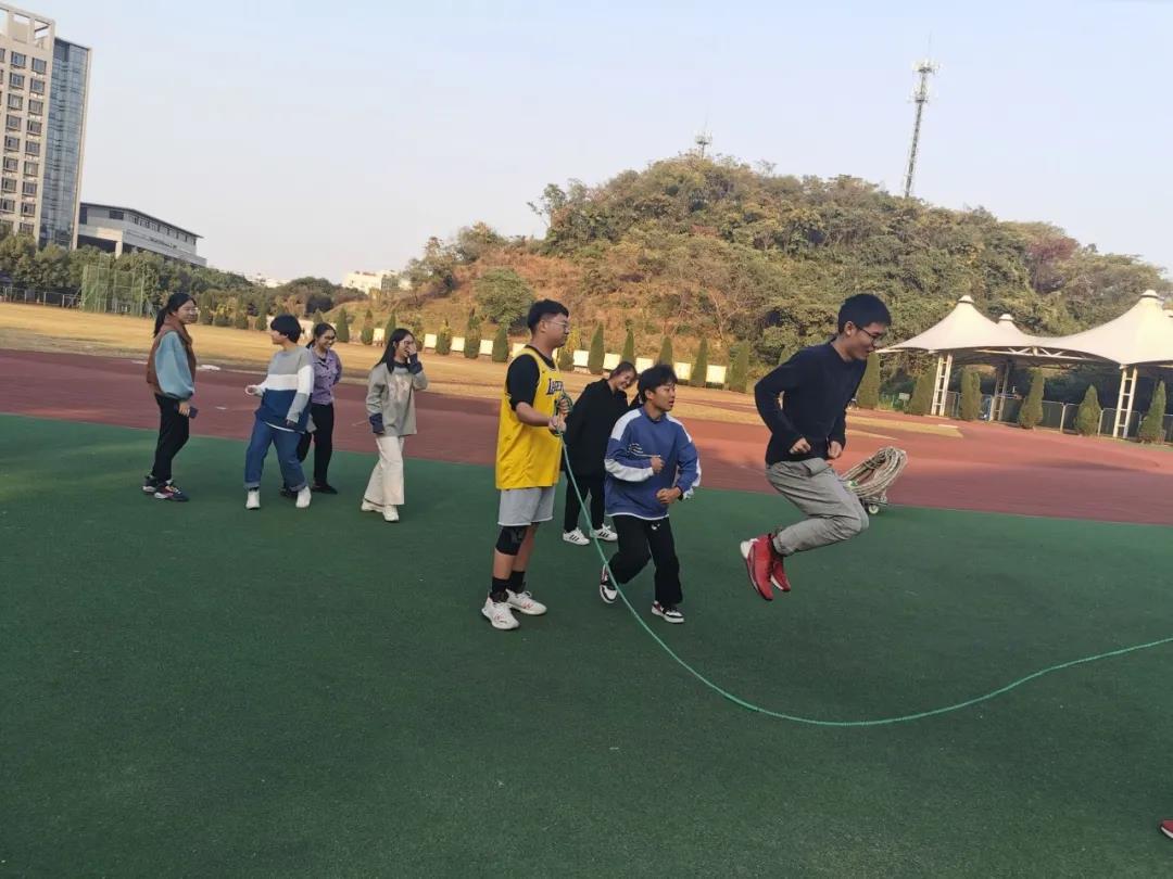 所有同学在田径场共同参与了排球,拔河,长绳等集体活动。在跳长绳过程中一些同学克服了对长绳的恐惧,战胜了自我;排球比赛以男生对战女生的形式开战,队友之间配合默契,相互鼓励;而在拔河比赛中,两组同学在奋力拼搏下各赢下一局,圆满结束了这场班级体育活动。