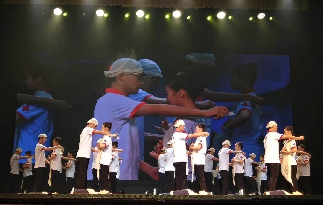 活动上,我院省级优秀学生社团—— “爱之翼”救护社社员承担了《红十字“救”在群众身边》救护技能展演任务。在展演中,社员们主要进行了心肺复苏、止血、包扎等大众现场救护技能的表演,他们的表演既专业认真,又生动形象,赢得了与会领导和观众们的阵阵掌声。