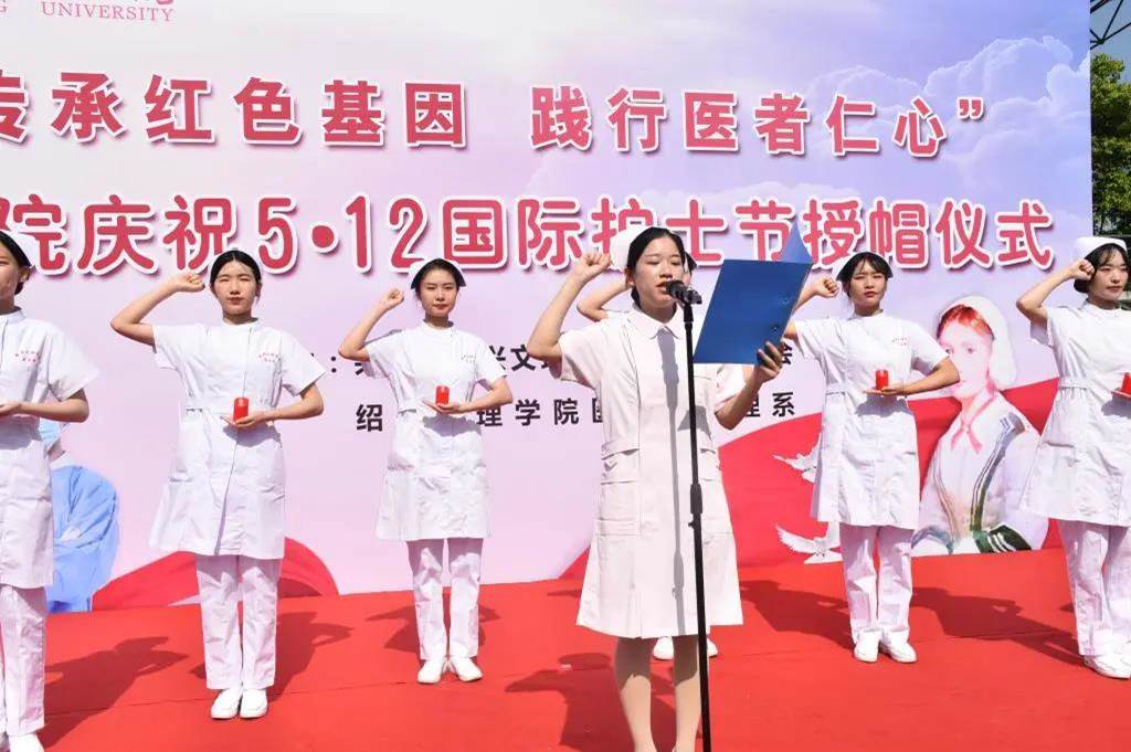 5月9日上午,学院举行主题为“传承红色基因 践行医者仁心”“5.12国际护士节”授帽仪式。副校长柳国庆,绍兴市护理学会副理事长、秘书长张园芳,绍兴市护理学会副理事长、校附属第一医院护理部主任马红丽,校附属医院护理部主任陈辉英、校附属第二医院护理部主任王芳、校附属妇幼保健院护理部主任汤小丽、开云最新官方附属精神卫生中心护理部主任朱亚珍, 2019届校友代表卢俊倩,学院党政班子成员,学院职能科室、系(部)、中心负责人,护理系全体教师和部分学生代表参加活动。
