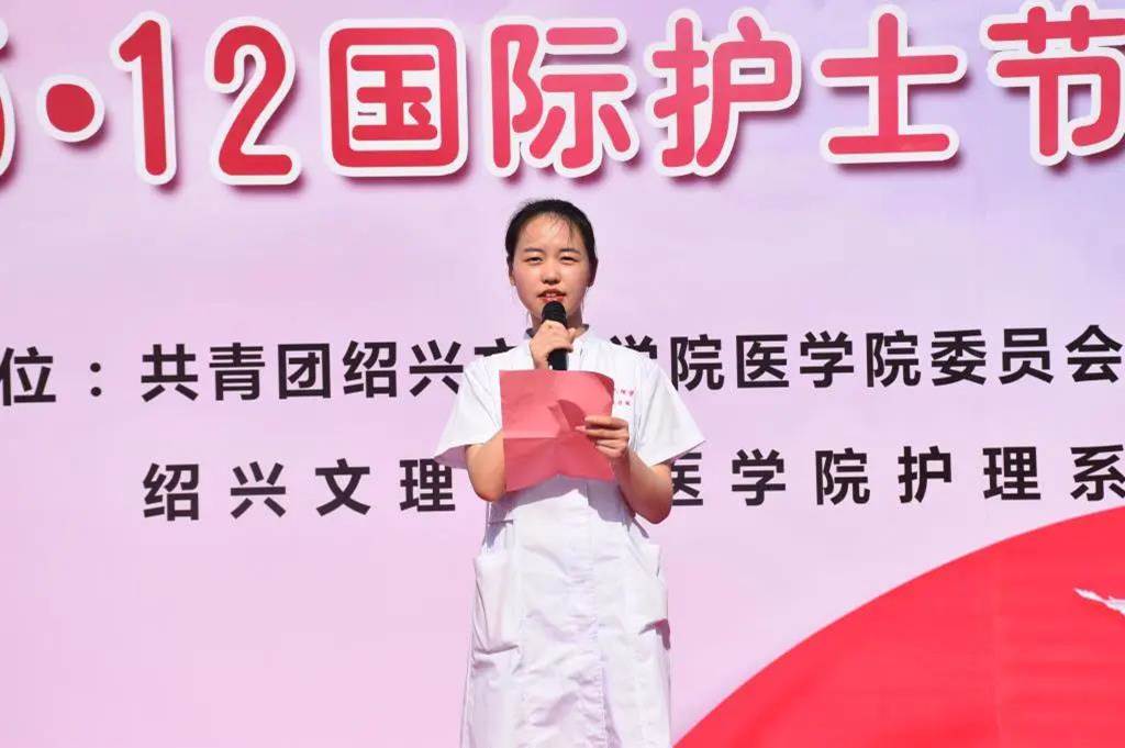 学生代表护理学181班汪玲炜表达了将继续学习和发扬南丁格尔精神,履行救死扶伤和防病治病的人道主义职责,把真诚之心无私奉献给每一位患者的决心,将以严谨之心对待学习,以坚韧之心对待工作,以敬畏之心对待生命”的信念做一名真正的白衣天使。