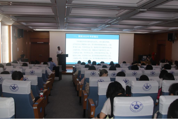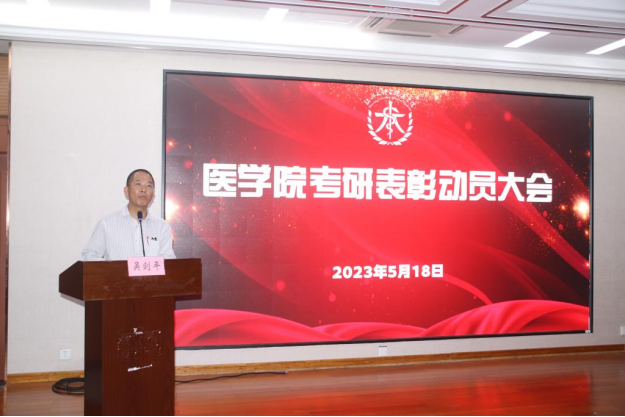 院党委书记吴剑平讲话。他首先回顾了学院的光辉历史、办学精神和卓越人才培养。他指出,考研学习要弘扬办学精神,汲取催人奋进的力量。他肯定了我院取得的考研成绩,向为考研工作辛勤付出的老师和同学表示感谢,并全面分析了当前的考研形势和考研的意义。他向2024届考研学子和医学生提出三点要求:一要心怀梦想,立志高远,全力以赴备战考研。年轻人既要有崇高理想,又要有诗和远方,起点眼界要高,命运掌握在自己手里。二要科学规划,提高效率,不断挑战丰富自我。每位同学要正确定位,科学合理谋划,全力以赴,认定目标后,以咬定青山不放松的劲头持续发力,成功的概率就会很大。三是坚毅笃行,顽强拼搏,努力追求卓越。人与人的差距主要在于毅力和意志品质的差别,要坐的了冷板凳,吃得了青春苦,方能成功登顶。他最后预祝2024届考研学子取得理想成绩,实现青春梦想。(学生科 席德科)