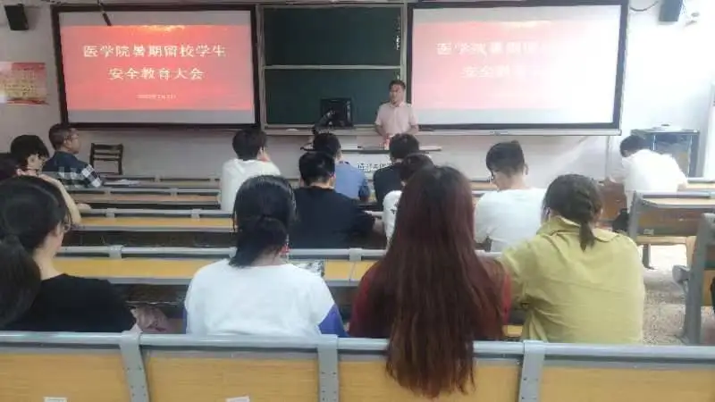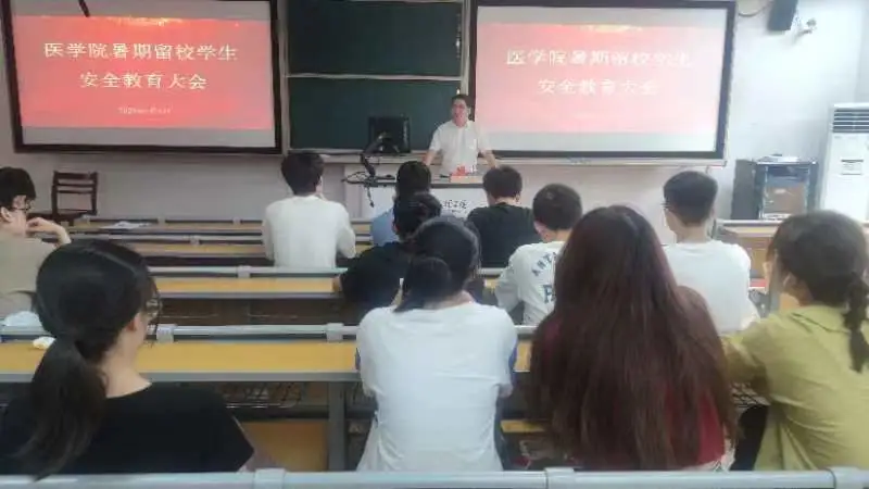 7月5日下午,我院在财贞楼213教室召开暑期留校学生安全教育大会。院党委副书记林国旗出席会议,院医学实验中心主任俞樟森、副主任方剑及全体留校学生参加会议。会议由席德科老师主持。