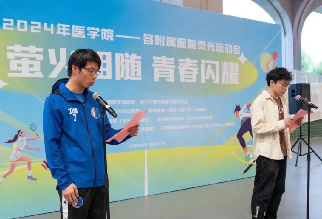 致辞结束后,运动员代表校附属第二医院(绍兴第二医院)团委副书记许浩和开云最新官方临床医学专业方嘉豪同学代表全体运动员宣誓。林国旗宣布荧光运动会正式开始。