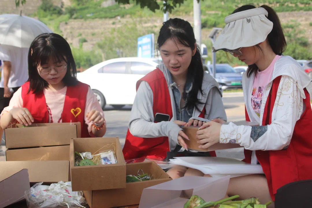 在一个荷花绽放、游客纷至沓来的美好早晨,璞玉南山周末集市揭开序幕。服务团的志愿者分为两组,第一组帮助当地商户进行摊位的布置,第二组负责集市活动礼品的包装。在村民陆陆续续的抵达集市后,服务团的志愿者对贵门乡村民展开问卷调研,通过这种直接有效的方式了解当地村民们的健康状况、自我保健和急救意识。此次问卷调查不仅能深入分析村民的具体需求,也有助于服务团志愿者更精准地对当地村民开展相关的健康教育。