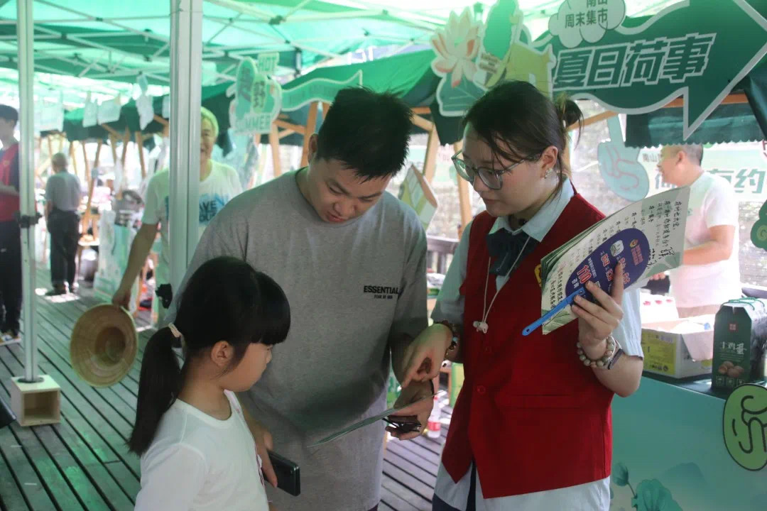在活动中,志愿者也用相机记录下荷花美景和集市的烟火气,希望通过短视频渠道推广璞玉村的赏荷集会,以此清晰地展现贵门乡璞玉村的风土人情和村民的真实生活,吸引更多的游客参与璞玉村的集市活动。