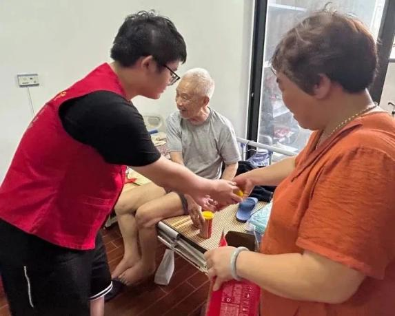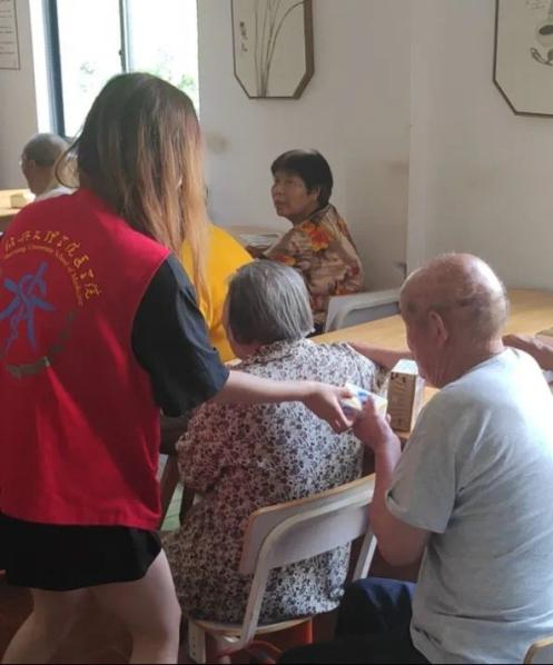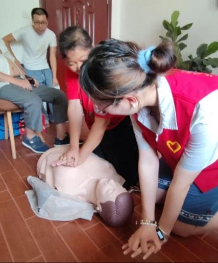 7月10日下午,在充分准备的基础上,另一小组成员清点并携带所需分发的爱心物资及急救演练CPR模型、AED除颤机器,前往敬老院慰问老人,询问他们目前的身体健康情况及就医模式,做好记录。其中,我们还前往拜访了一位101岁的长寿老人,两位同学与奶奶聊天,为奶奶按摩,展示了大学生的人文情怀。同期,爱之翼三级师资团队开展心肺复苏及AED体外除颤的相关急救模拟演示,钱院长用嵊州方言复述了操作流程和注意事项,使得在场的老人感受到本次培训内容的重要性,也逐渐理解和领会了一些重要操作的要领。一名阿姨积极上台学习胸外按压操作,不断练习后,她可以很好的控制自己按压深度和频率,也努力让自己的姿势更为标准,达到了良好的培训效果。