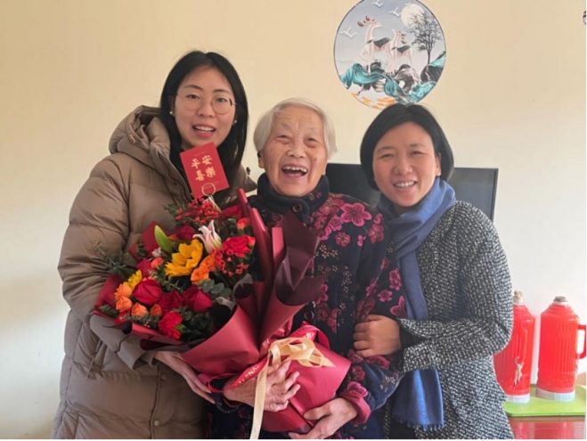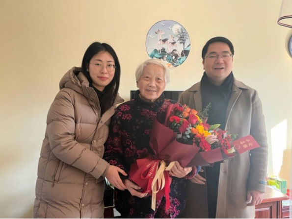 1月25日,开云最新官方党委副书记林国旗带领研究生第三党支部书记和护理专硕研究生党员,看望学院退休教师沈康瑛老师。