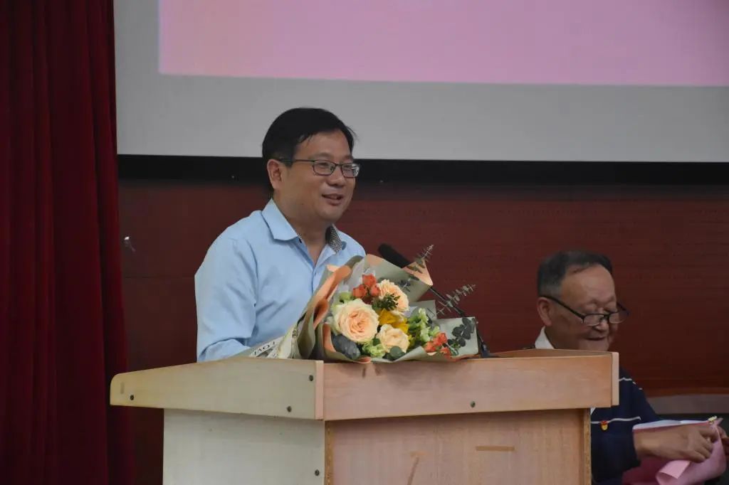 院党委副书记林国旗讲话。他回顾了“银耀医教奖学金”的设立情况,指出奖学金的创立意义在于激励家庭困难学生党员奋发向上、早日成才,助力健康中国建设。他向捐资助学的退休老党员表示感谢,向他们的仁爱之心和责任担当致敬。爱心改变命运,拼搏成就未来,他对获奖学生表示祝贺,并提出两点希望。一要永怀感恩之心,自觉磨砺,回报社会。二要永怀进取之心,增长本领,力当栋梁。他号召广大同学以梦想为翅膀,助飞远大理想。