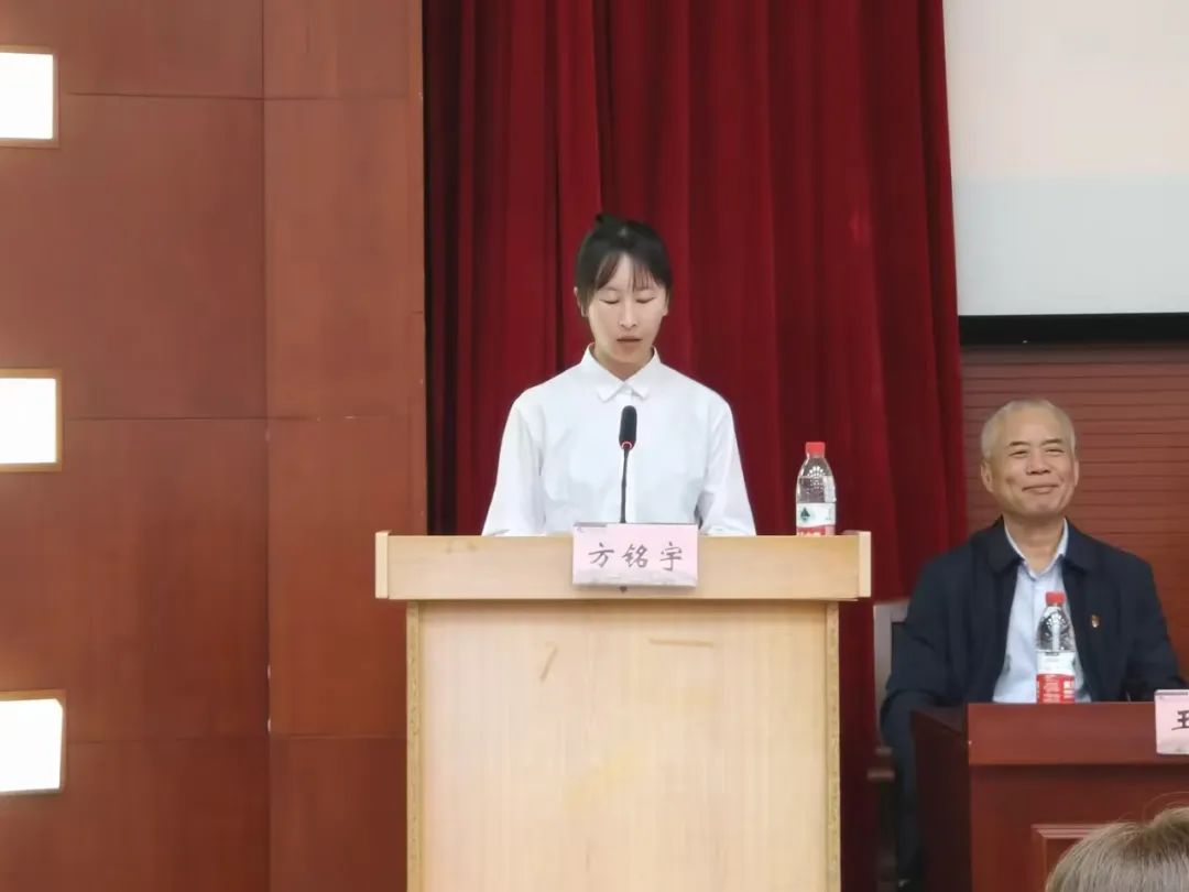 第三届获奖学生党员、入党积极分子代表,医学影像学221班方铭宇同学发言,字句铿锵有力,昂扬向上,尽显青春自信,奋发踔厉。