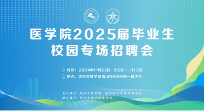 为深入学习贯彻党的二十届三中全会精神,落实“教育部关于做好2025届全国普通高校毕业生就业创业促进行动”的相关要求,促进我院医学生高质量充分就业。2024年11月23日,2024年医学类校园专场招聘会在绍兴文理学院南山校区6号楼一楼大厅成功举办。