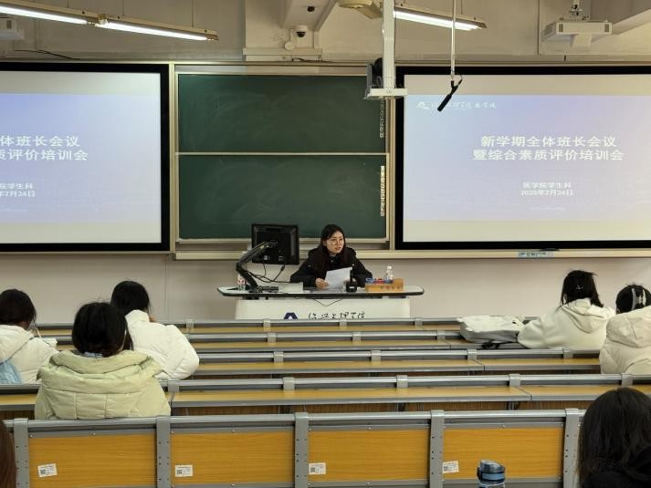 会议伊始,夏寒微老师亲切欢迎同学们平安返校,并对各班班长在过去一学期的辛勤付出与卓越工作表达了高度认可与诚挚肯定。接着,夏寒微老师主要围绕综合素质评价内容、流程、要求等方面进行详细讲解,并提醒各班班长、团支书要高度重视此项工作,坚持公平、公正、公开,严格规范评价程序,积极配合班主任老师,准确、高效地完成测评工作。