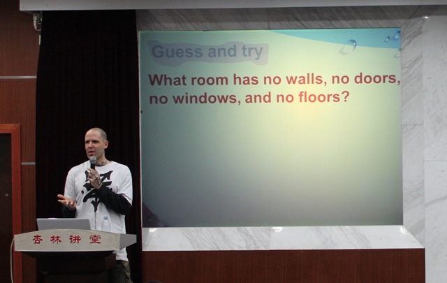 本次交流会邀请了芬兰于伟斯屈莱应用科技大学交换生童利娜及台湾大仁科技大学交换生周洁两位同学交流留学体会和心得。交流会上,董利娜分别从学习、生活、旅游三方面讲述了她在芬兰的点点滴滴。她用丰富的旅行见闻向同学们展现了芬兰生活的多姿多彩、独立和自由。周洁则主要从大仁科技大学的特色课程向同学们展示了不同地域的不同文化背景和教育特点。交流会后,来自外国语学院的外教魏柏文老师与在场学生展开了轻松愉快的英文互动活动。