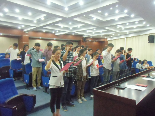 会议首先进行了新一届的团委、学生会干部聘任及就职宣誓仪式。在第七届团委副书记马琴芳的领誓下,新一届任职的学生干部庄严宣誓。短短数十字的誓词是一个承诺,也预示着他们肩负起一个学生干部光荣而艰巨的责任。