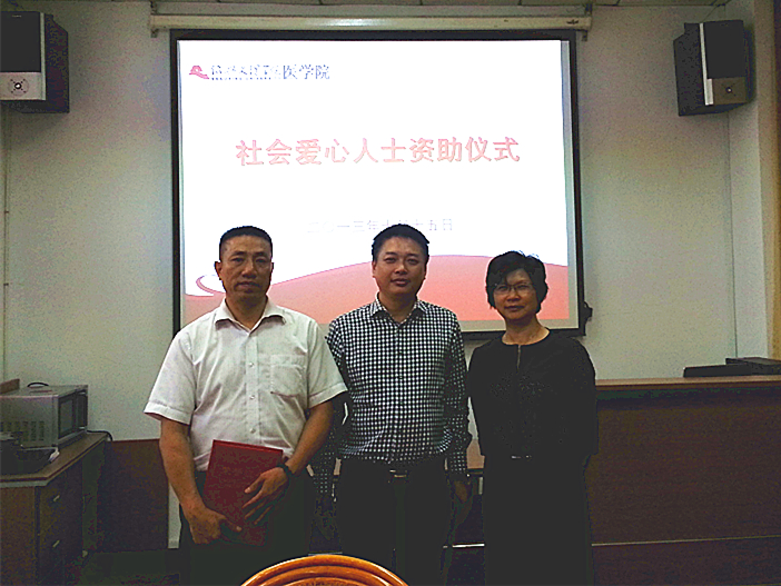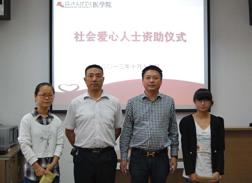 近日,绍兴县天成印染有限公司董事长张文彪先生、绍兴市东方法律服务所律师章志强先生来院为贫困生捐赠助学金,我院举行了简单而又隆重的捐助仪式。副院长朱小芳,护理系主任陈三妹,受资助学生及班主任、辅导员参加了捐助仪式。仪式由院团委书记赵华主持。