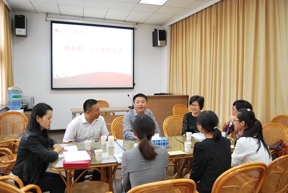 张文彪先生早年经营布匹生意白手起家,走上了致富之路。创业不忘回馈社会,在章志强律师的引荐下,主动捐助我院13级护理专业贫困生李娅玲,并专程将助学金送到学校。章志强律师是我院卫校毕业的校友,曾在我院退休教师、农工党员马淑华女士的倡导下,通过护理系主任陈三妹老师牵线,共同资助过11级护理学专业贫困生赵梅玲,今日代表马淑华女士又将助学金交到赵梅玲手上,并承诺会继续资助她完成学业。