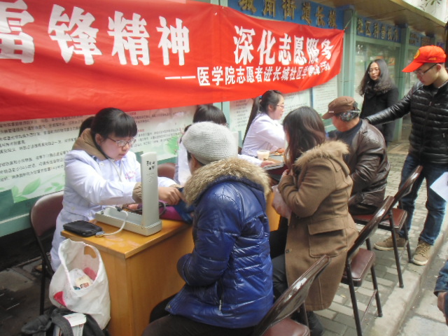 3月2日,院青年志愿者管理中心组织学院青年志愿者在越城区长城社区开展志愿服务活动。为社区老人义务测量血压,解答日常生活中遇到的常见医学问题,向社区居民宣传糖尿病、高血压、冠心病等常见疾病的防治和日常健康保健知识。活动充分发挥了专业特色,志愿者们用微笑和真诚服务于社会,赢得长城社区居民的好评。