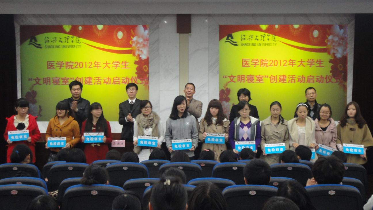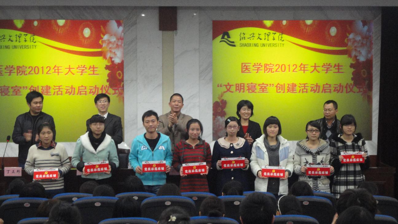 仪式期间,与会领导和老师为我院首批学生“免检寝室”及2012学年第一学期“党员示范床铺”授牌表彰。免检寝室代表朱淼同学做了表态发言,倡议全院学生建设文明寝室,做一个精神富有的当代大学生。