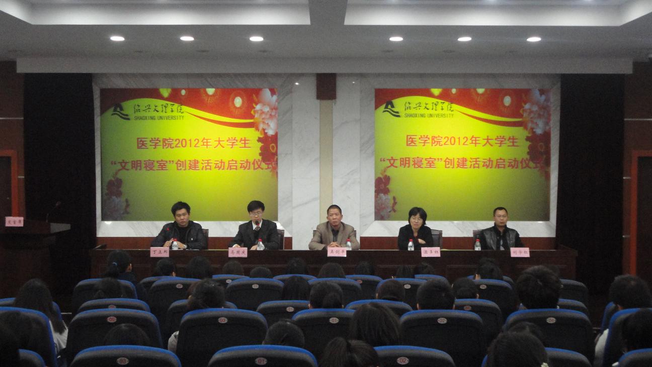 11月16日中午,开云最新官方2012学年大学生“文明寝室”创建活动启动仪式在财贞楼二楼学术报告厅隆重举行。院党委副书记吴剑平,办公室、教研科、学生科相关负责人,辅导员,公寓自管会干部,各班班长、副班长和寝室长代表近180人出席启动仪式。