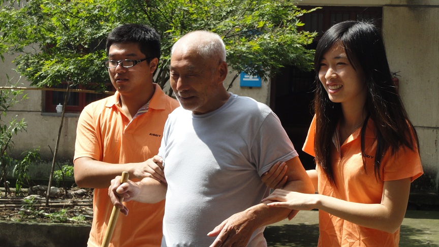 这是里南乡唯一的一所敬老院,共有孤寡老人34名,老人都居住在敬老院唯一的一栋两层楼的老房子中。看到我们的到来,早在活动室中等待的老人们脸上展露出了开心的笑容。年复一年,不等敬老院院长介绍,老人们就一个个自觉地走上来请护士以及两名服务团的成员替他们测量血压,检查身体。由于敬老院的老人普遍都患有高血压病、糖尿病,医师还深入浅出地为他们讲解平时饮食、起居中应该注意的问题。在翻译员的帮助下,老人们听得很认真。其中,有一位大爷卧床不起,已有两日没有进食。两名医护人员为他进行了详细的身体检查,并叮嘱老人的饮食。医疗卫生实践服务团也帮他与乡镇卫生院的人员联系,安排好了进一步的检查。随后,服务团的队员们给老人表演了京剧《红灯记》、全体大合唱《明天会更好》等节目。老人们不断地拍掌称赞,小小的活动室中洋溢着幸福与温馨。美好的时光总是特别短暂,我们合影留念,告别老人,祝福他们健康长寿。