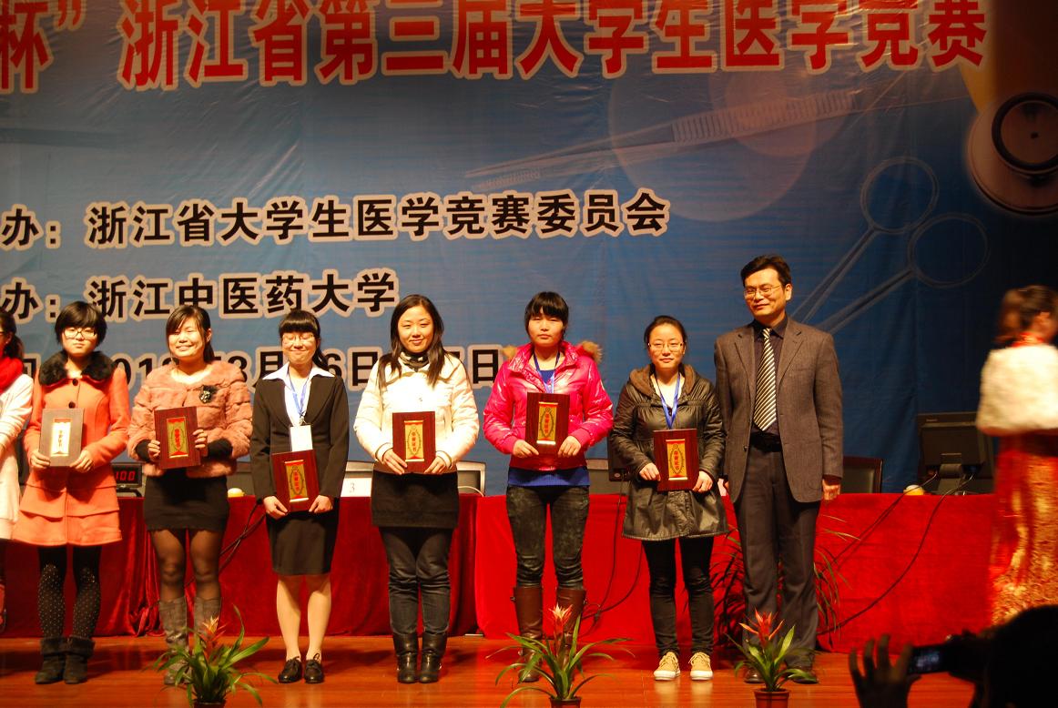 浙江省第三届大学生医学学科竞赛于3月16日至17日在浙江中医药大学举行。在两天紧张、激烈的比赛中,由我院学生组成的绍兴文理学院代表队在决赛中,取得了3项三等奖的成绩。