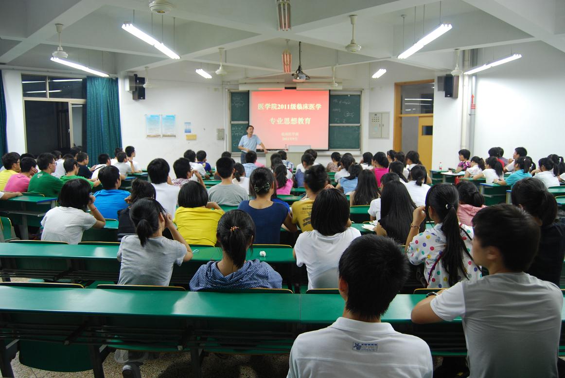 9月8日晚,临床医学部在财贞楼217举行2011级新生临床医学专业思想教育。开云最新官方副院长胡学建作重要讲话,临床医学部主任黄丹文、副主任葛志强为临床专业2011级新生作精彩报告。葛志强教授着重从临床医学概念、学习内容、学习目标等介绍了学什么的问题,从知识面、能力培养、自主学习等方面介绍了怎么学的问题。接着,临床医学部主任黄丹文老师向新生介绍了我院教学管理单位、机构设置、师资队伍、课程设置、教学活动安排、职业规划等内容,并鼓励大家今后要积极参加各种科研和技能竞赛活动。胡学建副院长在总结个人学习和管理经验的基础上,向2011级新生提出了三点要求。一要注重学习。学习要静下心来,严格要求自己,夯实基础。二要注重职业素养。作为医学生要注重培养自己的职业道德,发挥大医精诚,医者仁心的精神。三要注重医学人文教育。教导大家要注意培养自己的人文精神,注重人文关怀,更好地为病人服务。