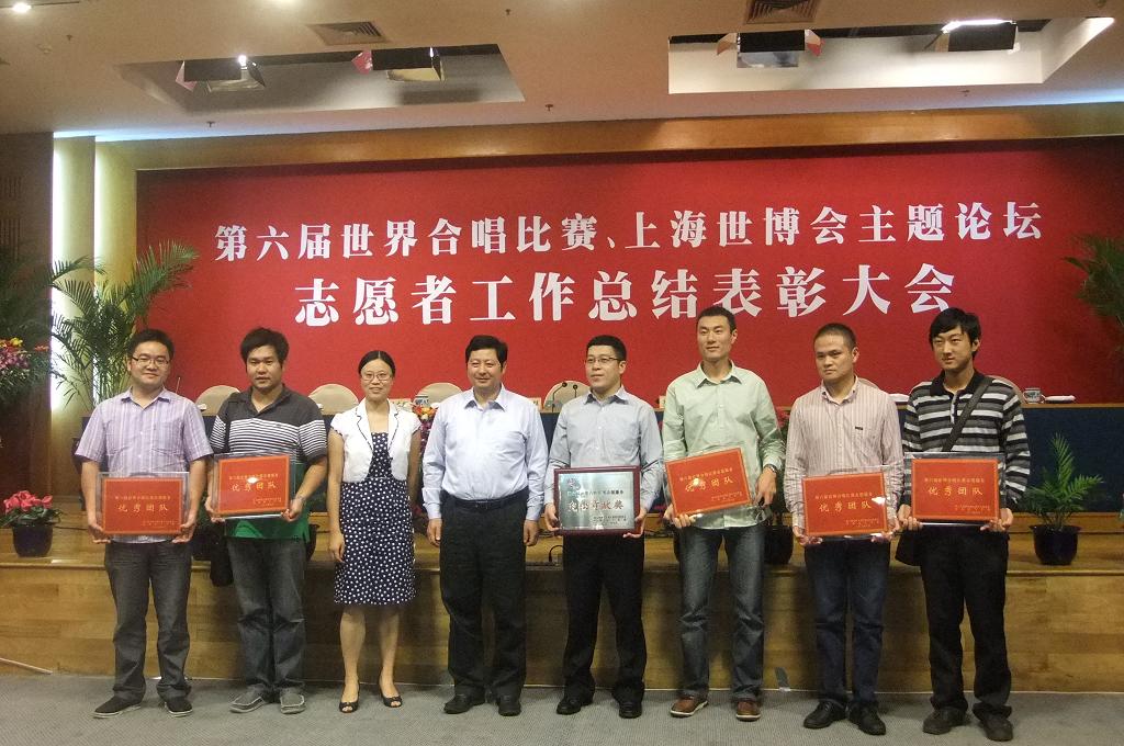 近日,第六届世界合唱比赛、上海世博主题论坛志愿者工作总结表彰大会在绍兴饭店隆重举行。绍兴市委副书记谭志桂,副市长何中伟,团市委书记、志工部部长王浩萍等领导出席本次大会。我院大学生志愿服务队喜获“第六届世界合唱比赛志愿者优秀团队”称号。
