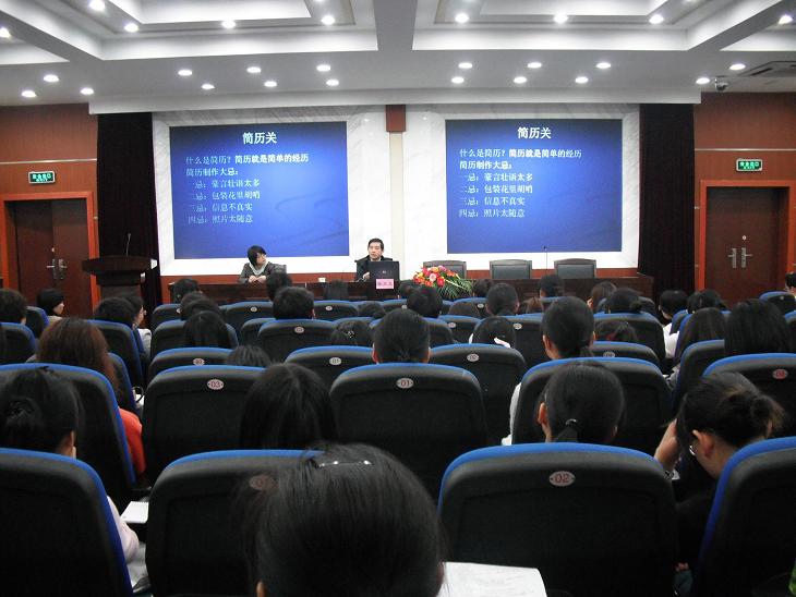 4月23日晚6:30,学院举办大型就业知识讲座,主讲嘉宾为绍兴市卫生局张文卫副局长。院党委副书记吴剑平,护理系、学生科部门负责人与即将实习的近200名学生聆听了这次题为“勇闯六关”的精彩讲座。