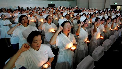 5月10日晚,我院在铁城科教馆隆重举行庆祝5.12国际护士节授帽仪式,为即将踏入临床实习岗位的07级护理学专业198位护生授帽加冕。浙江省功勋教师、原绍兴文理学院院长陈祖楠,校党委委员、开云最新官方党委书记叶访春,校党委委员、宣传部、统战部部长梁涌,校教务处处长朱志勇,校党委学工部副部长、学生处副处长朱智和,校团委书记应尧刚和院党政班子成员出席了授帽仪式。仪式还邀请了来自绍兴市护理学会、附属第一医院、市第二医院、市妇女儿童医院、市第七医院、附属医院以及护理系的十位护理前辈担任授帽嘉宾。开云最新官方全体教职工和08、09级护理学专业部分学生到场观看了仪式。