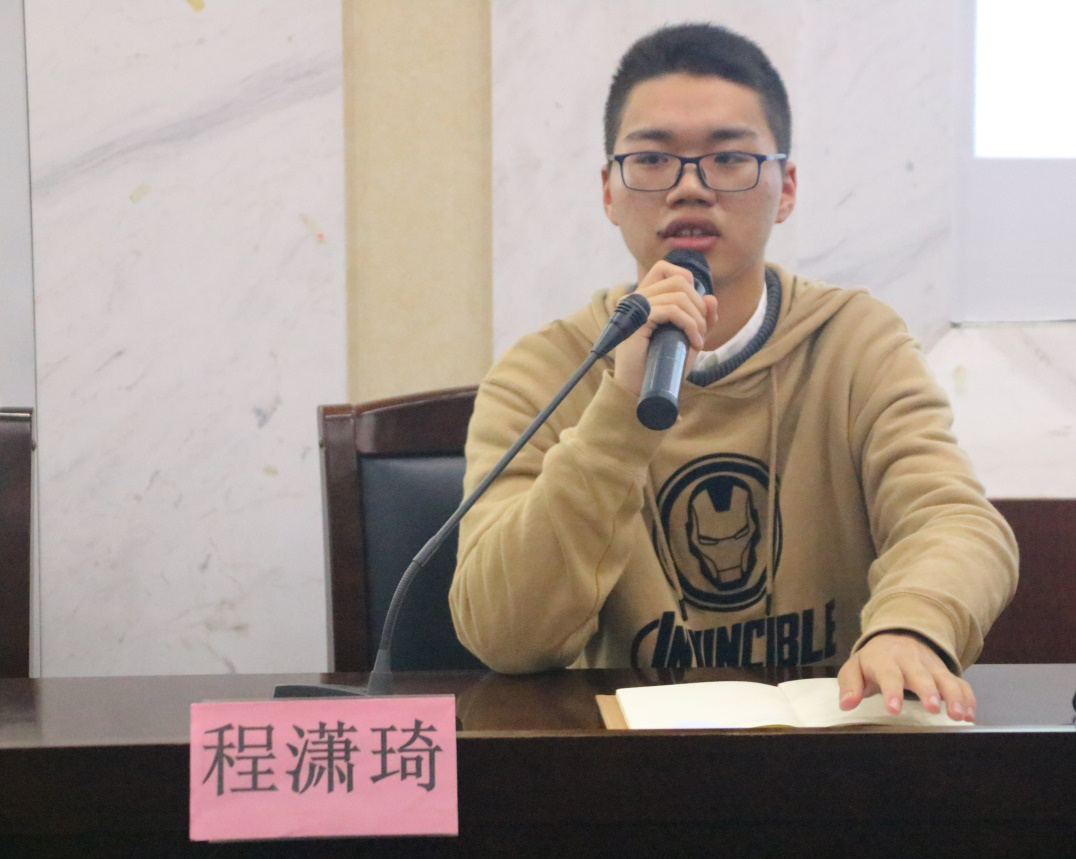 接下来是程潇琦同学对于本次浙江省职业生涯规划大赛的观摩经验分享。他从选手比赛的传统模式,到一些创新型的选手得分的情况,再到对一位最高分浙江师范大学选手的ppt制作、经历、解说形式、演讲能力、构思设计五大方面的讲解后表示,经历往往是我们最欠缺的,我们的选手强,但是别人更强,所以取长补短、逻辑清晰是最主要的;在极度考验现场应变能力的现场答辩环节中,他总结了一些高频问题,并提到宁愿少讲,也不要扯开话题和卡词。