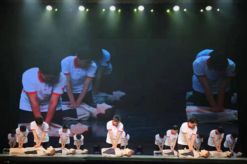 活动上,我院省级优秀学生社团—— “爱之翼”救护社社员承担了《红十字“救”在群众身边》救护技能展演任务。在展演中,社员们主要进行了心肺复苏、止血、包扎等大众现场救护技能的表演。他们的表演既专业认真,又生动形象,赢得了与会领导和观众们的阵阵掌声。一场精彩的演练,不仅增长了与会人员的急救知识,同时又展示了新时期高等开云最新官方校大学生的精神风貌,医学生们娴熟的救护技能得到了市领导和广大市民的高度赞扬,从而更好地树立了学院学生的良好形象。