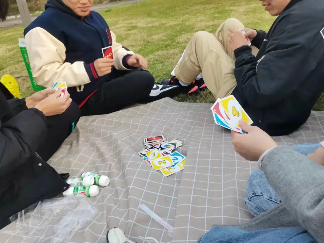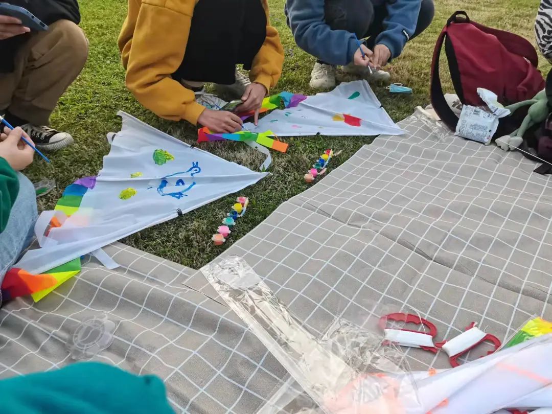 提及春日踏青,放自己定制的风筝可是一件很酷的事情!社员们利用彩笔绘制出属于自己独一无二的风筝,风筝的款式多样,既有可爱的动漫人物——派大星,也有充满生机的春景图。各具特色的风筝背后展现了社员们不同的想法和希望。草地上,大家都攥着风筝线,迎风奔跑,现场此起彼伏的呼喊声、欢笑声,烘托出浓浓的欢乐气息。一只只别具特色的风筝在蔚蓝的天空中随风翱翔、争奇斗艳。落日的余晖散落在风筝上,寄托在风筝上的希望与祝福变得闪闪发光。