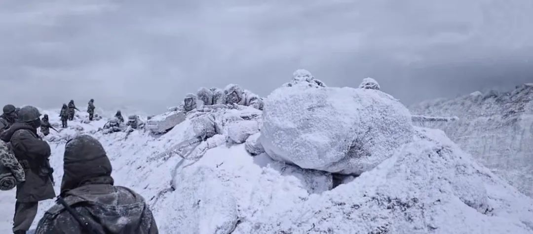 这场戏不仅用长镜头拍出了悬疑,起到了扣人心弦的效果,片段结束时更是令人感受到战争的残酷与悲壮,再次渲染了敌我双方在装备上难以弥补的差距,又以一种镜像的方式致敬了邱少云烈士。
