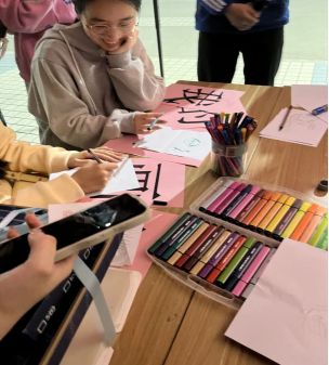 阳光心理社的自画像活动也是热闹非凡,通过画画同学们展现出心中的自己以及了解别人眼中的自己,最后达到认识自我的目的。同学们三五成群地参与,有些画技不好的同学,总是逗得大家捧腹大笑;也有看着画像陷入沉思的同学。在这个活动里,想必大家的内心有着不同的感触,同时也与身边的好友拉近了距离。