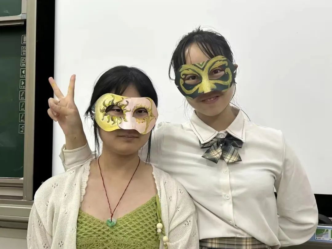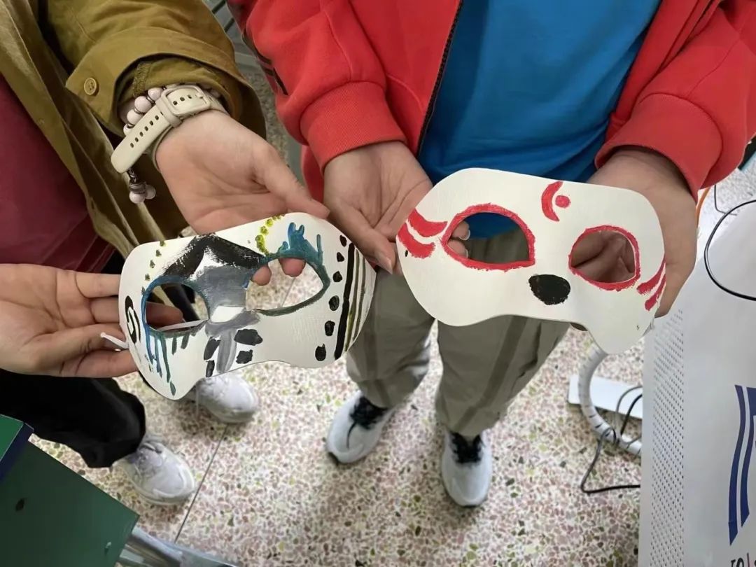 而后同学们纷纷选择了自己最喜欢的颜色,在面具上添加了喜欢的图案或者文字,无论是星星、花朵,还是抽象的图形。每一个细节都是大家个性的一部分,都让每个人的面具充满活力,成为宣泄情感的载体。