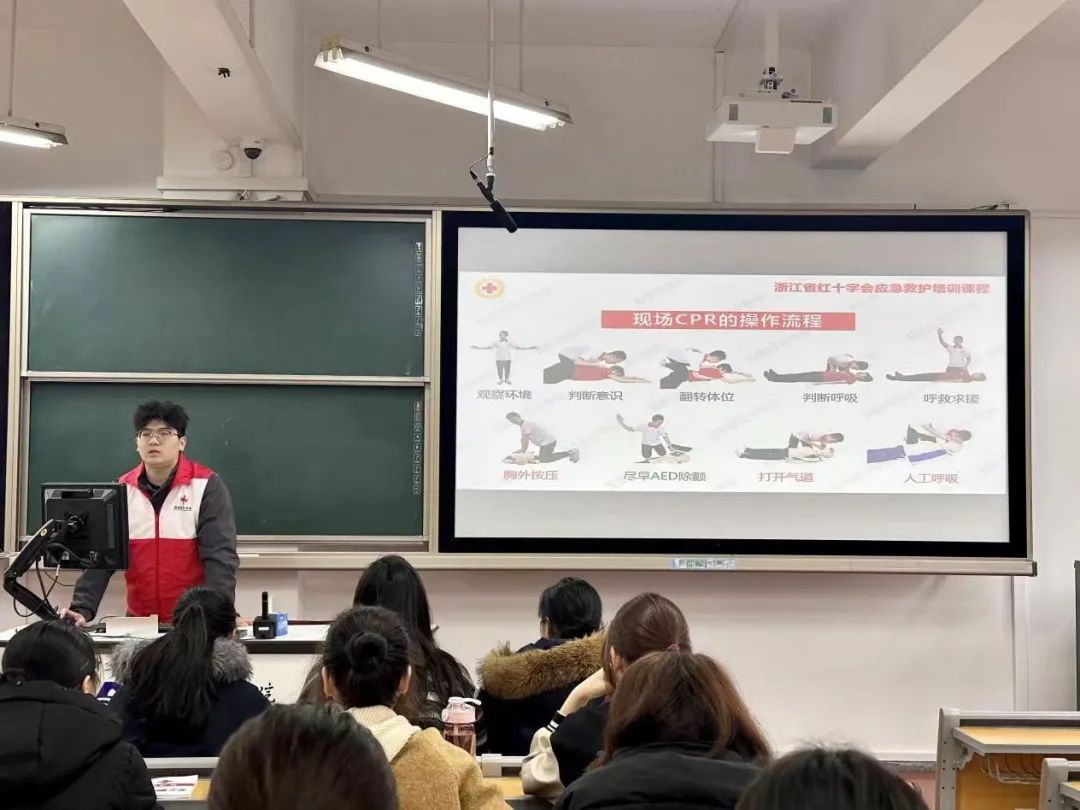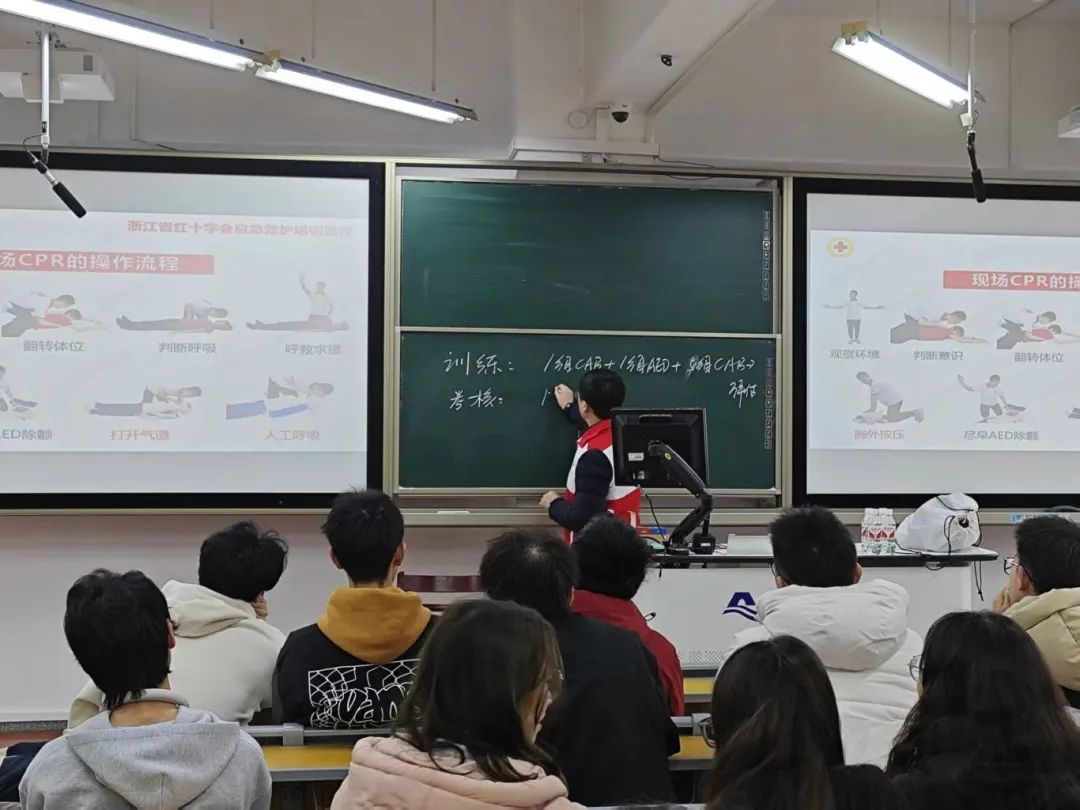 培训期间,专业的师资团队针对心肺复苏、AED使用、气道异物梗阻急救以及创伤救护等重点内容,展开了全面且深入的教学。课堂上,同学们全神贯注地听救护员的细致讲解,积极主动地投入实操练习,力求熟练掌握这些能在关键时刻挽救生命的重要技能。