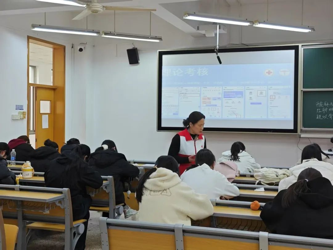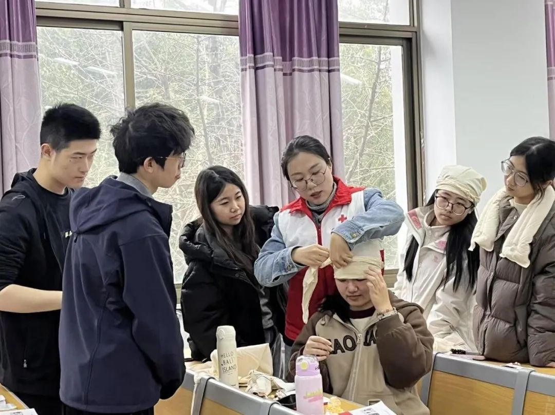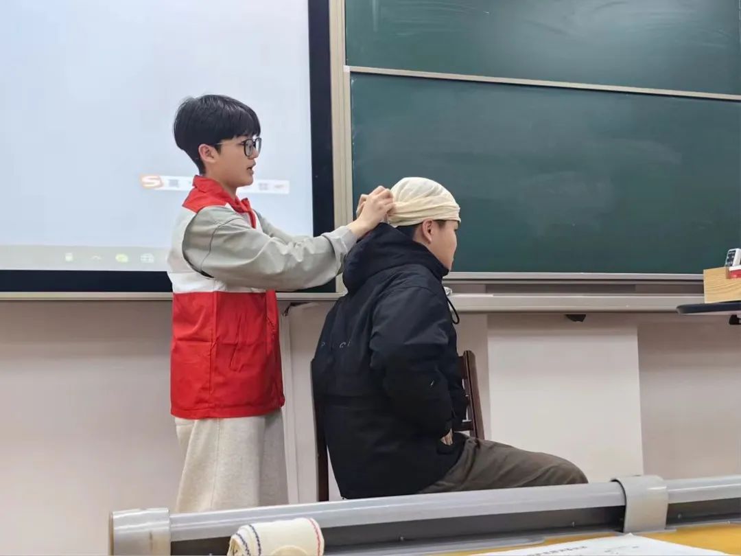 在前期进行了充分的教学准备与物资筹备后,培训课程如期顺利开课。社团延续线上线下融合的高效培训方式:同学们首先需在指定的线上平台观看精心制作的教学视频,搭建起系统的急救知识理论框架,随后按照学院进行分班,参与线下实操教学。这种创新模式有效促进了同学们将抽象的理论知识与实际操作相结合,从而更深入地理解和掌握急救知识与技能。